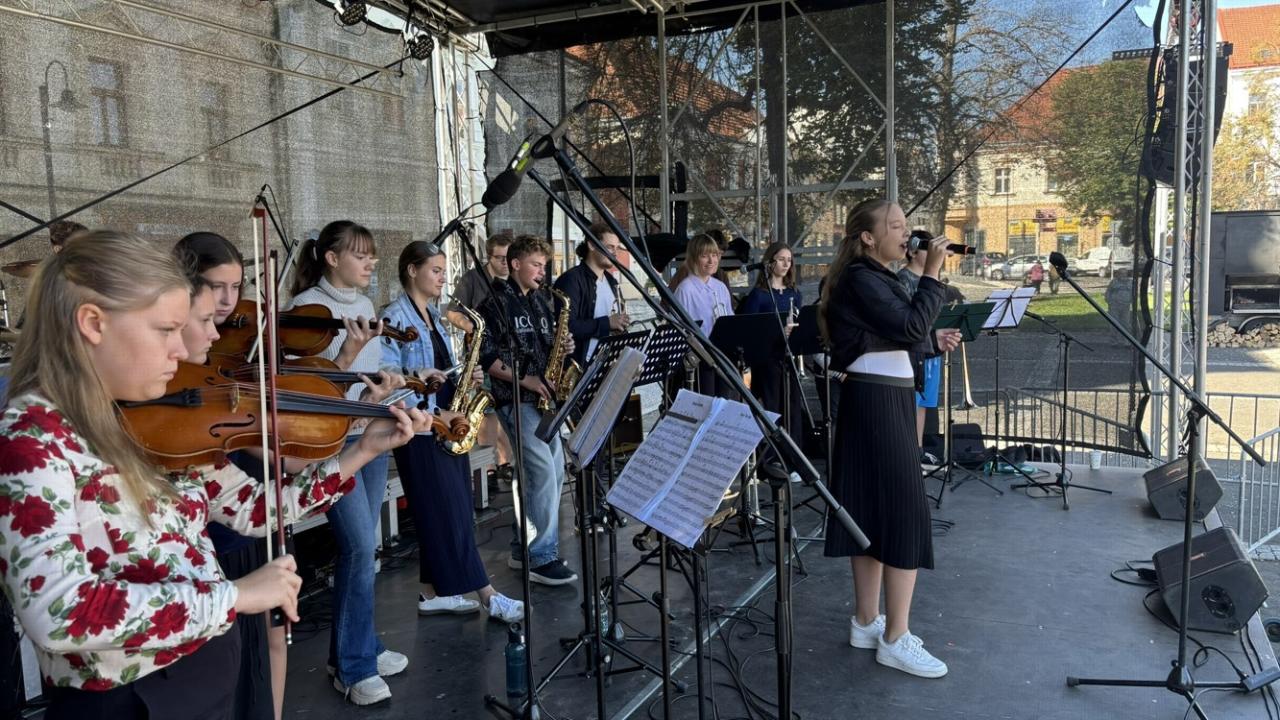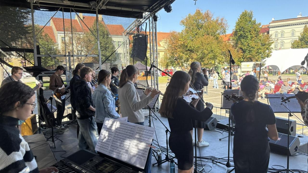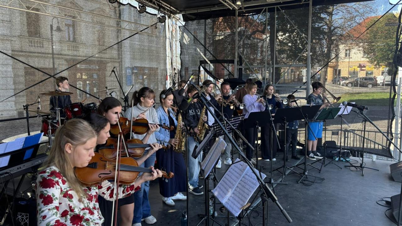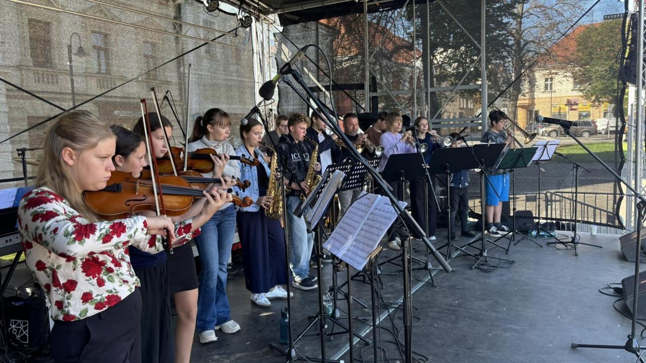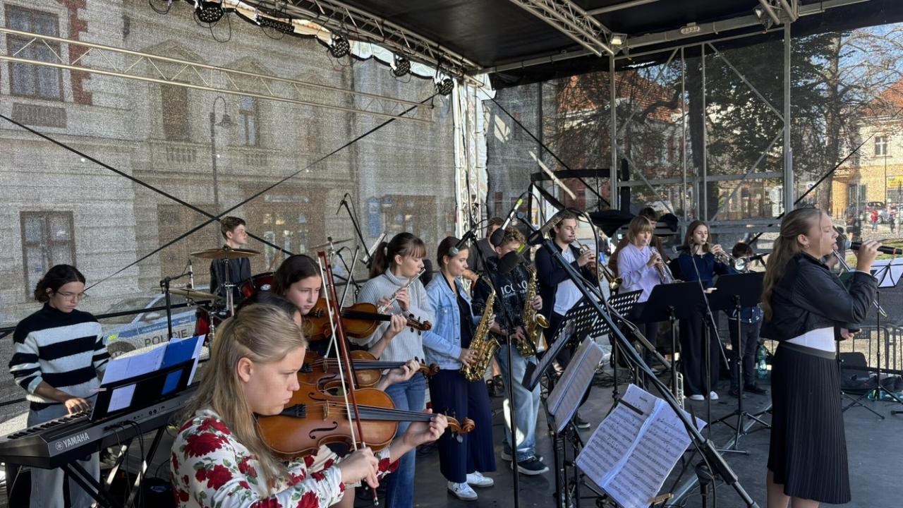 Koncert školního orchestru na městských slavnostech - "Rožnění uherského býka"