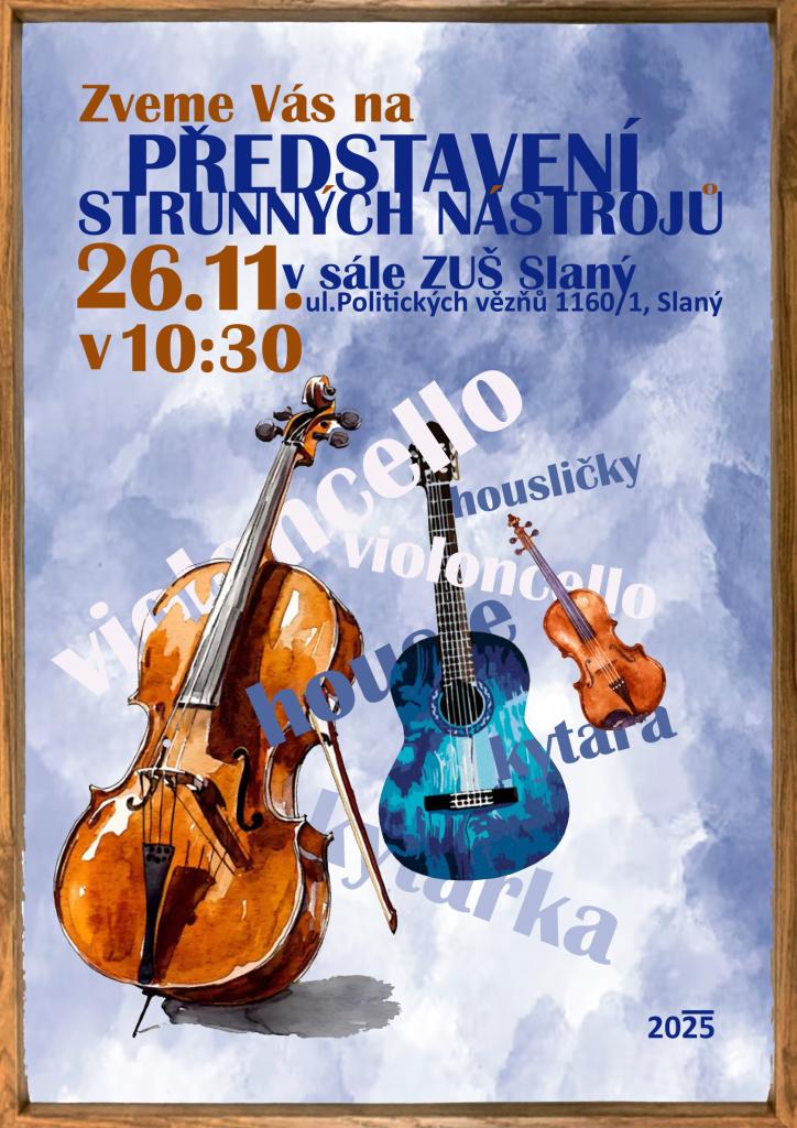 Koncert pro mateřské a základní školy. Žáci se seznámí s nástroji strunného oddělení. Koncert bude spojen s odborným výkladem a s popisem nástrojů. Koncertů bude několik během dopoledních hodin 26. a 27. listopadu.