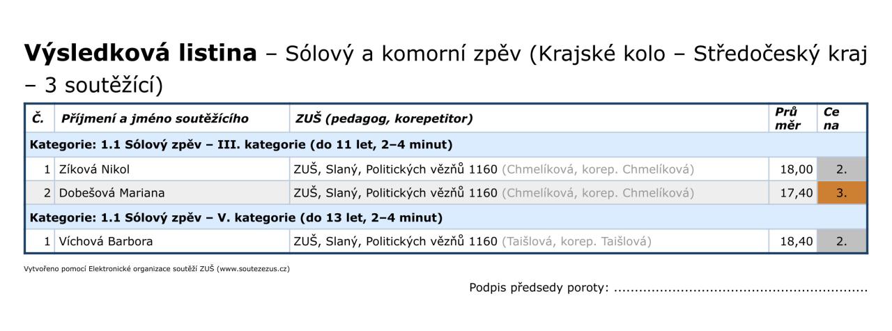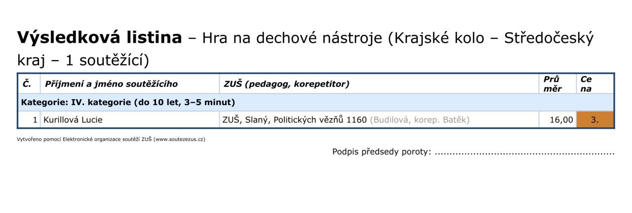 Gratulujeme úspěšným žákům ke skvělým umístěním v krajských kolech soutěží ZUŠ a Vivien Stöhrové budeme držet palce v ústředním kole.