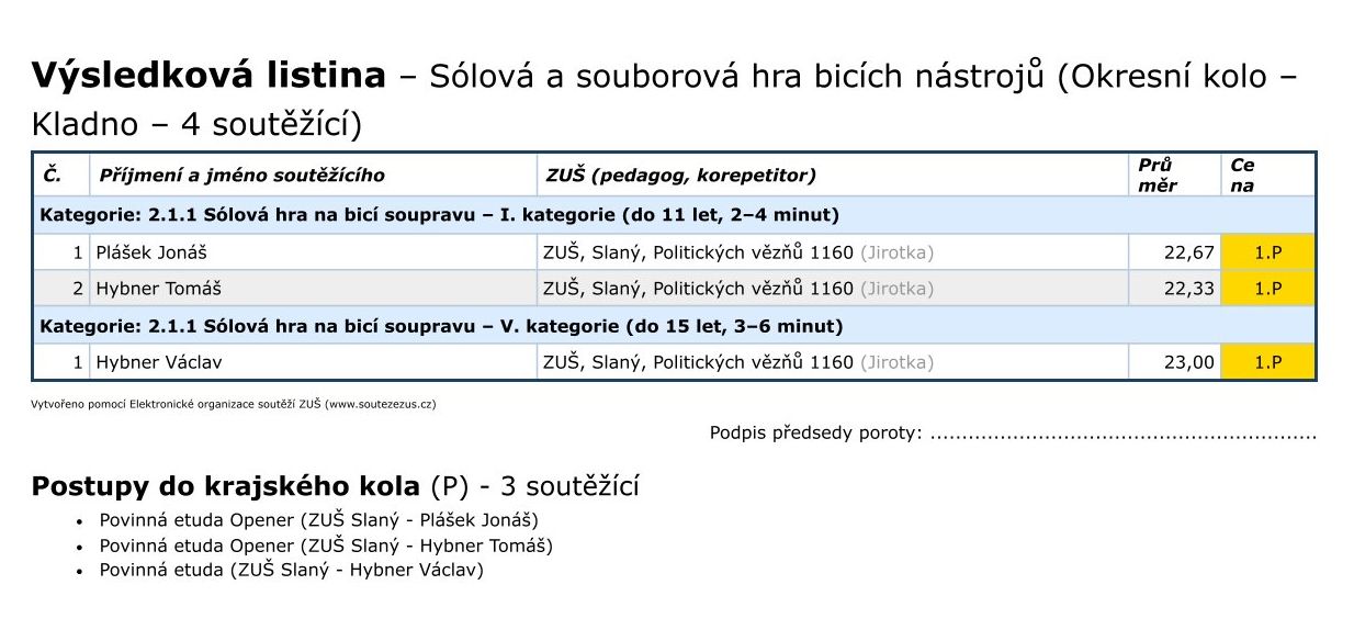 Gratulujeme úspěšným žákům ke skvělým umístěním v soutěžích ZUŠ a k postupům do krajských kol.