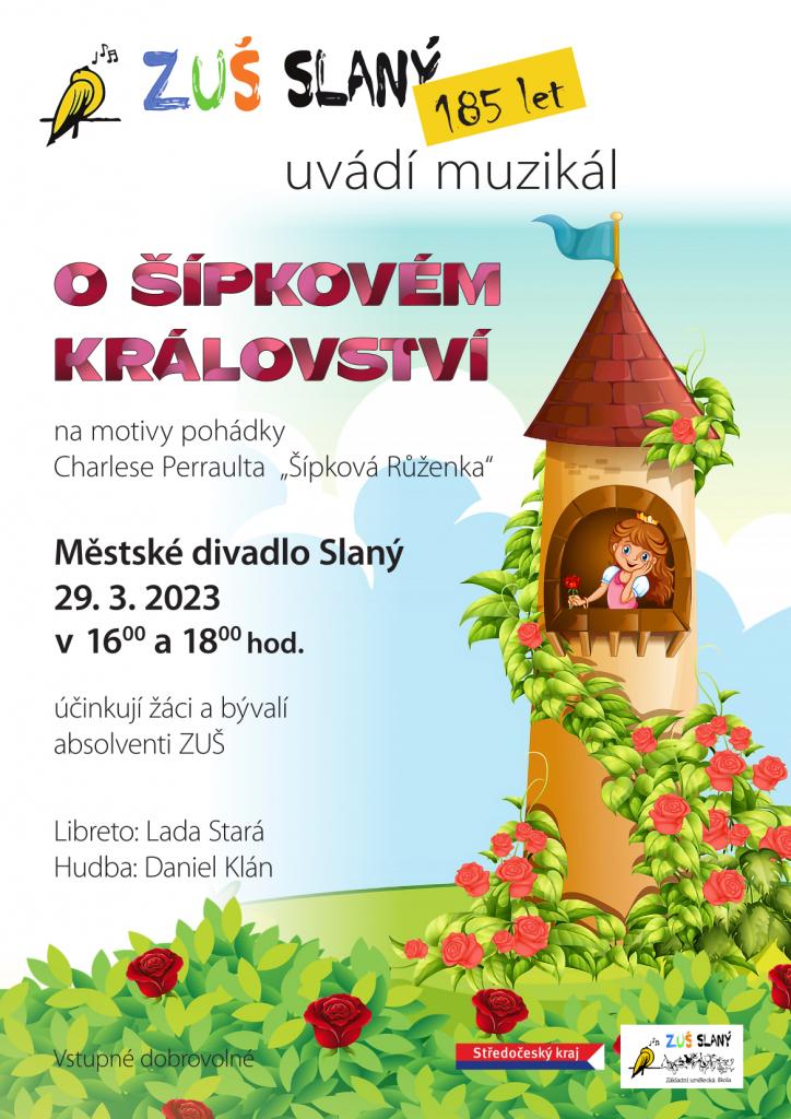 29. 3. 2023 proběhla v Městském divadle Slaný premiéra muzikálu O Šípkovém království, jejímž autorem je učitel zpěvu ze slánské ZUŠ pan Daniel Klán a libreto napsala paní Lada Stará.